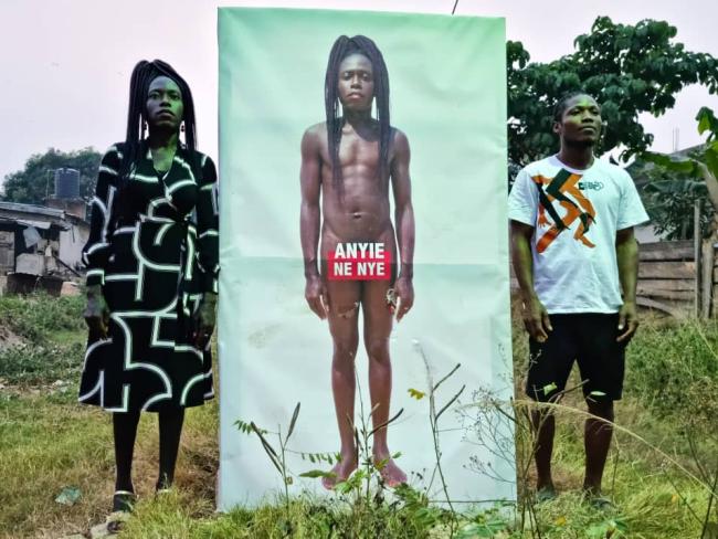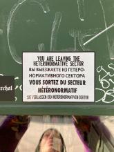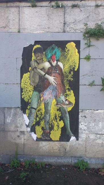 Vediamo il poster ideato da Itziar Markiegi a.k.a. Jana Jan e Myriam Rzm, performer e artiste sonore – hanno immaginato un corpo doppio, multiplo, un corpo collettivo in mutazione. Sono intervenute sullo scatto sia in maniera analogica che in photoshop. Il poster è posizionato davanti a una cassa, stampato su una carta leggera fatta apposta per vibrare a contatto con le onde sonore. Dopo l’azione sonora, staccheremo il poster dal supporto e andremo ad attacchinarlo su un muro della città.